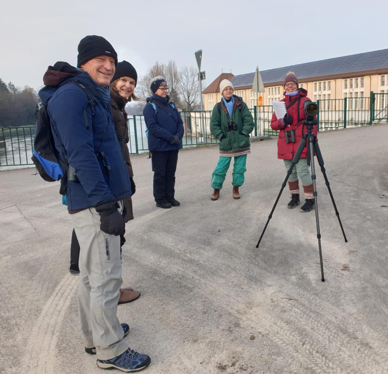 Der NVBDN lädt am 21. Januar 2024 zur Winterexkursion an die Ergolzmündung ein. Zehn kälteresistente Vogelinteressierte leisten dem Folge und treffen sich warm eingepackt am Sonntagmorgen bei frostigen Temperaturen und immerhin milchigem Sonnenschein beim Kraftwerk Augst.